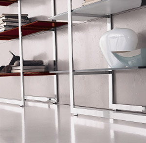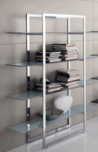 Regal aus Metall verchromt oder Edelstahl satiniert. Dim: 1150 x 350 x 1750 mm