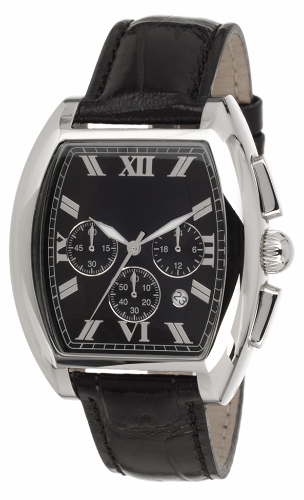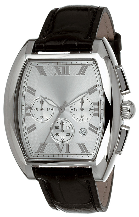 Quartz chronograph stainless steel case shiny finishing relief,roman figures,datary water resistent,leather strap,Citizen movement